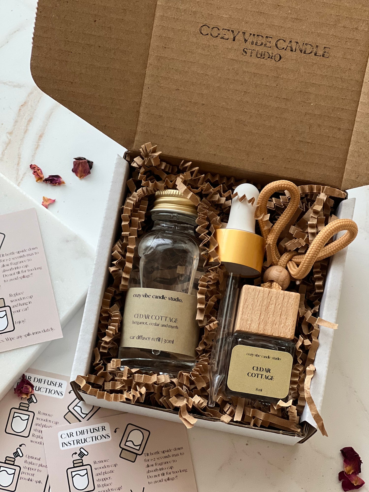 There is a separate listing for the car refills! Simply add the coordinating refill to the order. Car diffuser and refill will be packaged in a gift box.