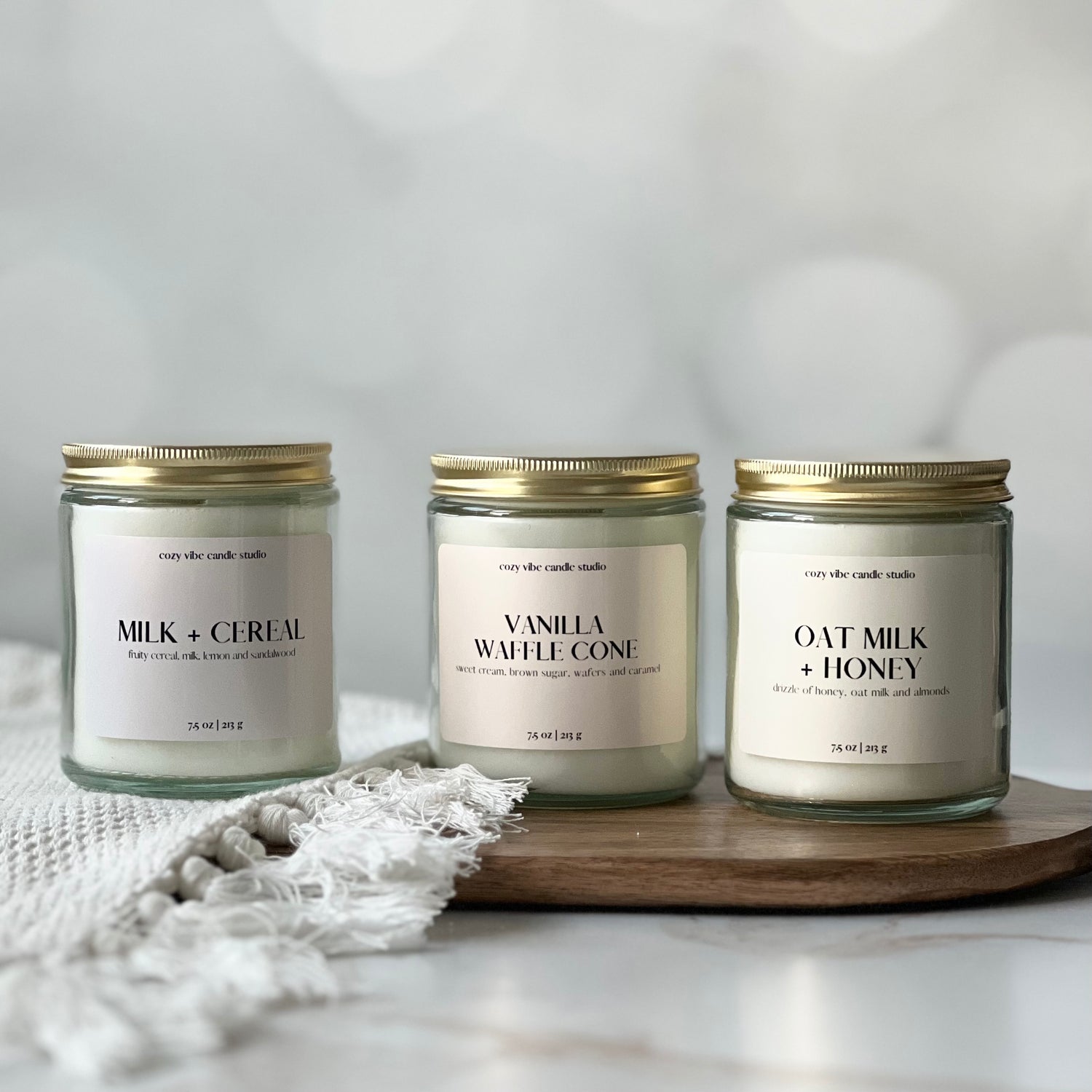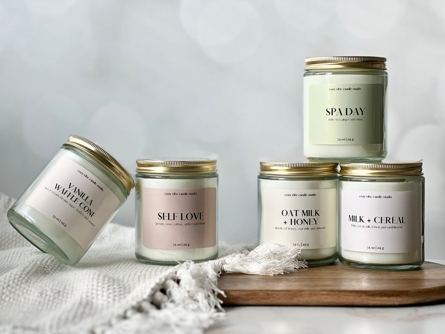 7.5oz glass vessels with gold lid perfect for bedrooms, bathrooms and medium size living areas.